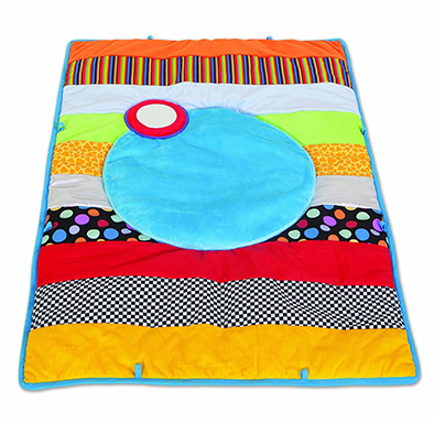 Alfombra de genero suave con caricaturas divertidas, espejo inclinado, sonajero y anillos de colores. De gran calidad y brillantes y variados colores. 70 x 100 cm