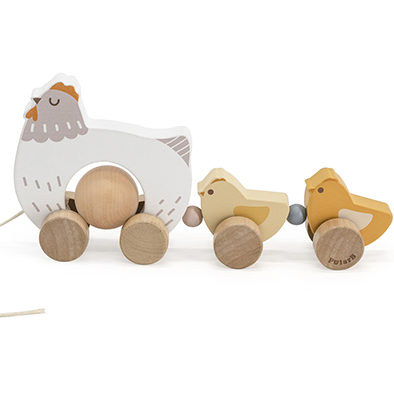 Este adorable juguete para arrastrar es el compañero perfecto para los más pequeños y las más pequeñas que están dando sus primeros pasos. Mientras se mueven, los pollitos se balancean alegremente y el huevo desmontable gira para mayor diversión. Este juguete no solo entretiene, sino que también ayuda a desarrollar la coordinación y las habilidades motoras de los bebés. Fabricado en material suave y resistente.