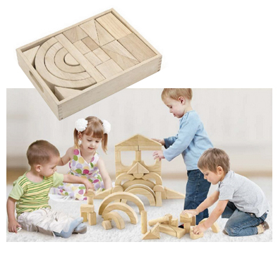 Caja de madera con 42 bloques de construcción de madera de alta calidad.