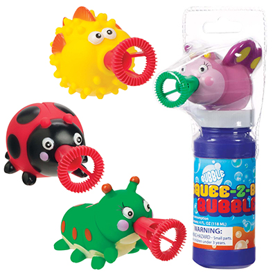 Botella con solución de burbujas no toxico. 4 diferentes animales de suave cuerpo que al apretarlo salen grandes burbujas de la boca de la criatura. Una diversión burbujeante. Modelos surtidos. Precio por unidad.
