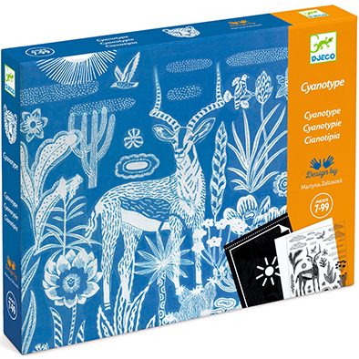 Una fantástica combinación de ciencia y manualidades, este kit «Cianotipia Noche en la Sabana» de Djeco incluye todo lo necesario para que niños y adultos se diviertan con sus manualidades. Crea diseños en papel fotosensible, ya sea usando los patrones opacos incluidos o cosas que encuentres en casa o en el jardín. Al exponerse a la luz del sol, los negativos de los patrones se reproducen en el papel. Luego, solo tienes que enjuagar el papel con agua limpia y ver cómo aparecen los diseños sobre el fondo azul. Contiene 8 hojas de papel fotosensible, un folleto de instrucciones y un montón de ideas para imprimir. Vea las 127 imágenes de animales y follaje que encontraría en Sabana o simplemente junte hojas y cosas en su jardín para hacer increíbles obras de arte impresas.