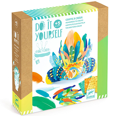 Divertido kit de manualidades de Djeco con un bonito sombrero para decorar. Incluye: un sombrero, plumas y pegatinas con reflejos metálicos. Además, incluye un cordón para atar el sombrero y que quede bien ajustado a la cabeza. Un accesorio perfecto para juegos de rol que niños y niñas pueden decorar ellos mismos. Edad recomendada a partir de 5 años.