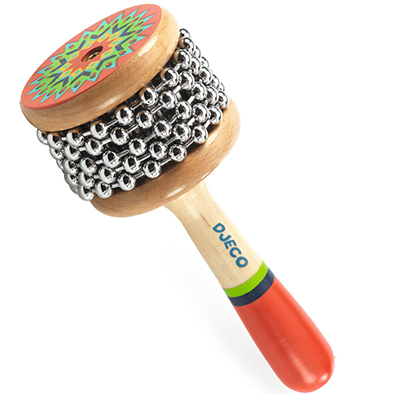 Una cabaza con hermosas ilustraciones de temática nativa americana. Al girar las bolas en la parte metálica con muescas o agitar el instrumento suena como una serpiente de cascabel. Diseñado para estimular el gusto por la música, el ritmo, la motricidad gruesa y más. Un instrumento de percusión para introducir a los niños a la música y desarrollar su sentido del ritmo. Recomendado a partir de 5 años de edad. Fabricado en madera con certificación FSC®.