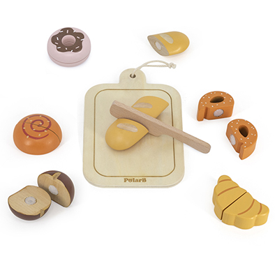 Con este divertido juego de cortar panes y pasteles los niños y niñas pasarán horas de diversión. Un juego muy entretenido que incluye 6 pasteles para cortar con velcro que los une. Contiene 5 pasteles de dos piezas cada uno y un pan de 3 piezas, cuchillo de madera sin filo y tabla de madera. Ideal para el desarrollo de las habilidades motoras finas y la autonomía de los más pequeños. Fabricado en material suave y resistente.