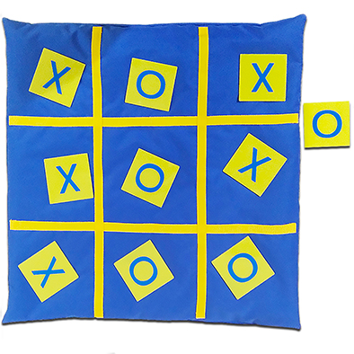 1 Juego de el Gato para jugar en el piso de tamaño grande de 68 x 68 cm. Con 10 piezas de acrílico plana impresas con una X y O de 10 x 10 cm. Con Bolsa para guardar.