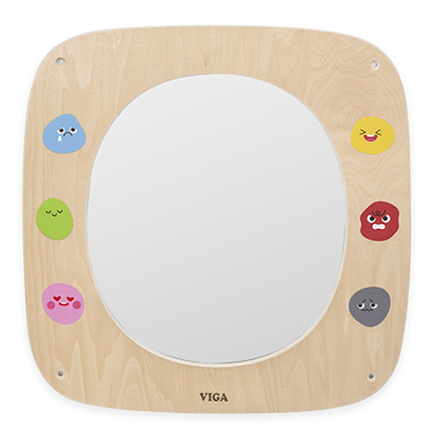 Divertido juego de pared diseñado para estimular el desarrollo cognitivo de los más pequeños de una forma muy entretenida. Este juego de espejo acompaña el desarrollo de la autopercepción y la exploración de las emociones a través de las expresiones faciales. El espejo está rodeado de ilustraciones con caras con diferentes emociones y colores. Fabricado en material suave y resistente con colores vivos.
