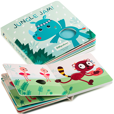 Cuenta tu propia historia de la jungla con este libro de cartón lleno de sonidos y dibujos preciosos. Estimula el oído, el sentido del tacto y la imaginación.