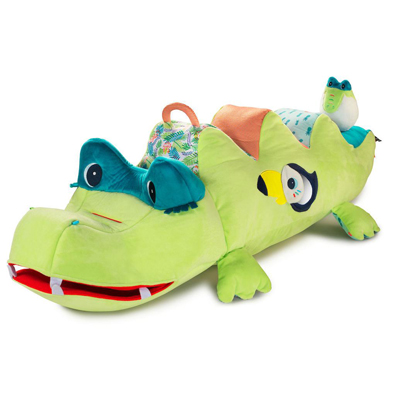 Nuestro adorable juego para descubrir objetos de Anatole incluye un sonajero, un espejo, un pito, y sitios para esconder cosas (y también secretos). Este juguete de cocodrilo grande y super suave, estimula los sentidos y derrite los corazones.