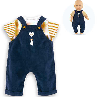 Hermoso conjunto de enterito y polera a rayas para que las muñecas de 30 cm paseen con el mejor estilo francés. La ropa de Corolle está hecha de materiales suaves y cuenta con correas de velcro para que los niños y niñas la puedan poner y quitar fácilmente. Recomendado para niños a partir de 4 años. De excelente calidad y diseño.