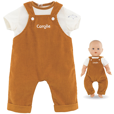 Hermoso conjunto de enterito y polera blanca con detalle estampado para que las muñecas de 36 cm paseen con el mejor estilo francés. La ropa de Corolle está hecha de materiales suaves y cuenta con correas de velcro para que los niños y niñas la puedan poner y quitar fácilmente. Recomendado para niños a partir de 4 años. De excelente calidad y diseño.