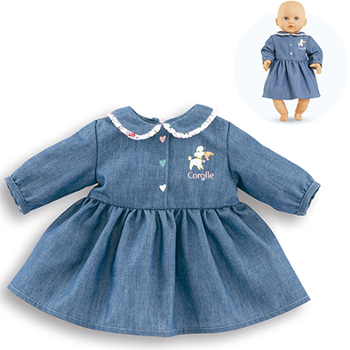 Hermoso vestido celeste para que las muñecas de 30 cm paseen con el mejor estilo francés. La ropa de Corolle está hecha de materiales suaves y cuenta con correas de velcro para que los niños y niñas la puedan poner y quitar fácilmente. Recomendado para niños a partir de 4 años. De excelente calidad y diseño.