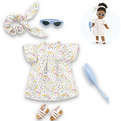 Hermoso vestido floreado con accesorios para que las muñecas de 36 cm paseen con el mejor estilo francés. El set incluye un hermoso vestido con flores, un cintillo, un par de anteojos, un peine y un par de sandalias. La ropa de Corolle está hecha de materiales suaves y cuenta con correas de velcro para que los niños y niñas la puedan poner y quitar fácilmente. Recomendado para niños a partir de 4 años. De excelente calidad y diseño.