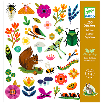 Una colección de 160 stickers de hermosos animales del jardín. Incluye 2 hojas duplicadas. fabricado en papel y cartón fsc certificado. Un juego ideal para que los mas pequeños creen historias estimulando el desarrollo del lenguaje y dejando volar su imaginación.